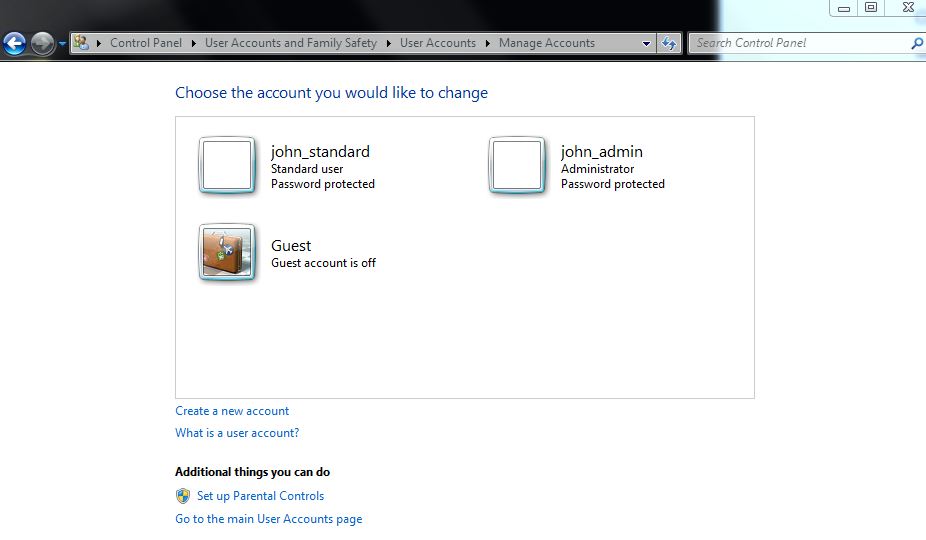 Windows: Windows 10/11 account management now goes via Settings → Accounts → (Family &) Other users → Add/ Create account. Whereas Windows 7 goes via Control Panel → Manage Accounts → Create a new account, as in the picture below: